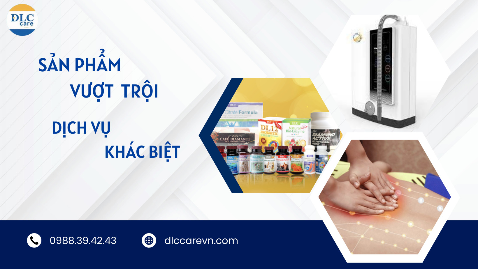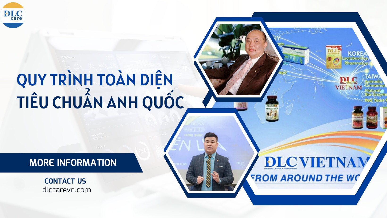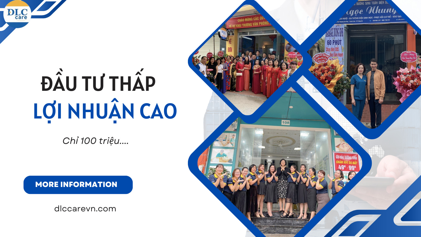 DLC Care là hệ thống chăm sóc sức khỏe đến từ Anh Quốc, hiện diện tại Việt Nam hơn 10 năm , sở hữu đội ngũ kỹ thuật viên và chuyên gia hàng đầu cùng các sản phẩm dinh dưỡng cao cấp và thiết bị hiện. DLC Care tiên phong ứng dụng trị liệu DDS và dưỡng sinh hiện đại, và là thương hiệu được hàng triệu khách hàng tin tưởng trong và ngoài nước. Với sứ mệnh “giúp đối tác thành công & khách hàng hạnh phúc” làm kim chỉ nam, DLC Care hướng đến việc nâng cao sức khỏe khách hàng và mở ra cơ hội đầu tư nhượng quyền bền vững.