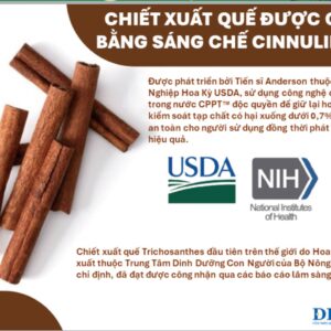 Đồng thời, sản phẩm có bổ sung Crom, thành phần giúp thúc đẩy hoạt động của Insulin, đặc biệt hiệu quả với các bệnh nhân tiểu đường.