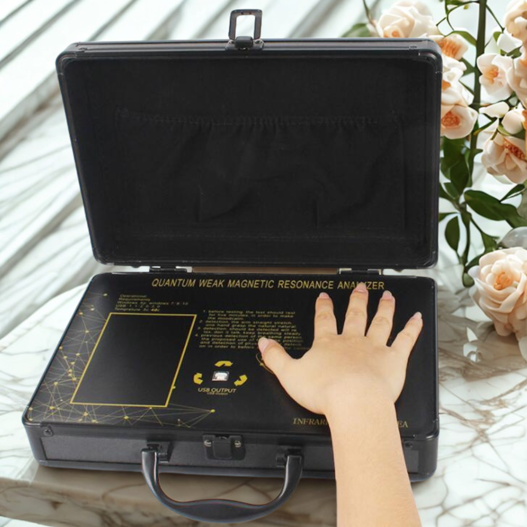 Máy đo lượng tử sinh học (Quantum Analyzer) là thiết bị sử dụng tần số sinh học của cơ thể để phân tích các tín hiệu và đưa ra báo cáo sức khỏe tổng quát.